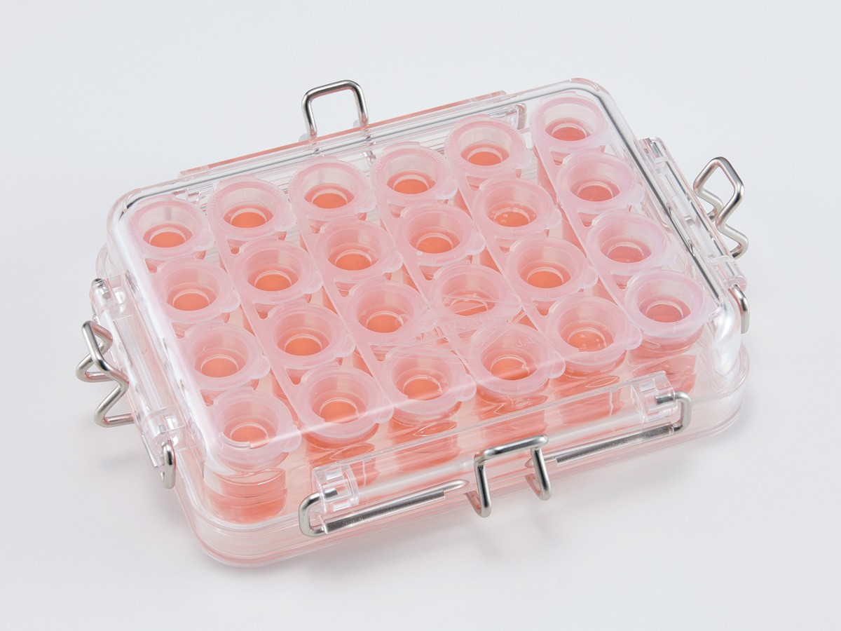●It is transported by holding it firmly with the lid of the iP-TEC® secondary container and the mesh cushion. (The reticulation cushion is omitted in the photo.)
